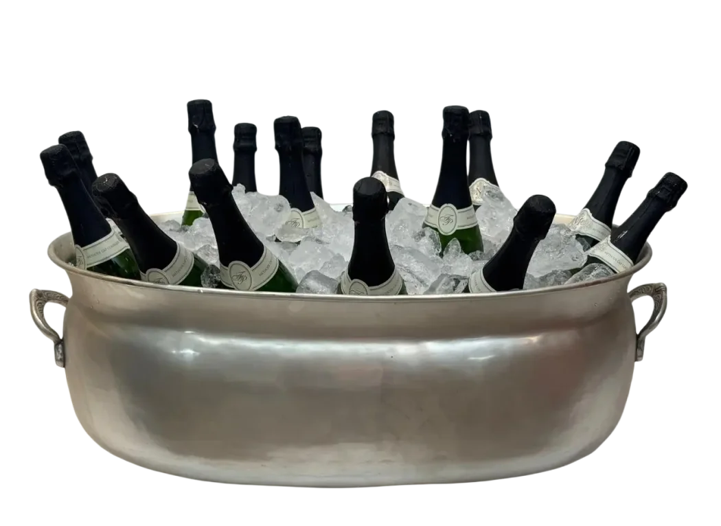 An elegant, extra large silver pewter plated wine cooler tub, handmade by artisans in India. Can also make a spectacular orchid tub.