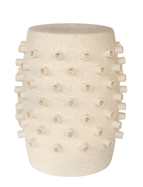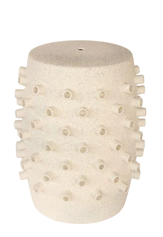 This refined ceramic garden stool showcases a sophisticated off-white finish with subtle speckled detailing. Its textured surface adds depth and character while maintaining a clean, minimalist aesthetic that suits contemporary and transitional spaces. This versatile piece serves as an exceptional plant pedestal, side table, or sculptural garden accent. The neutral palette ensures seamless integration with existing décor, while the solid ceramic construction.