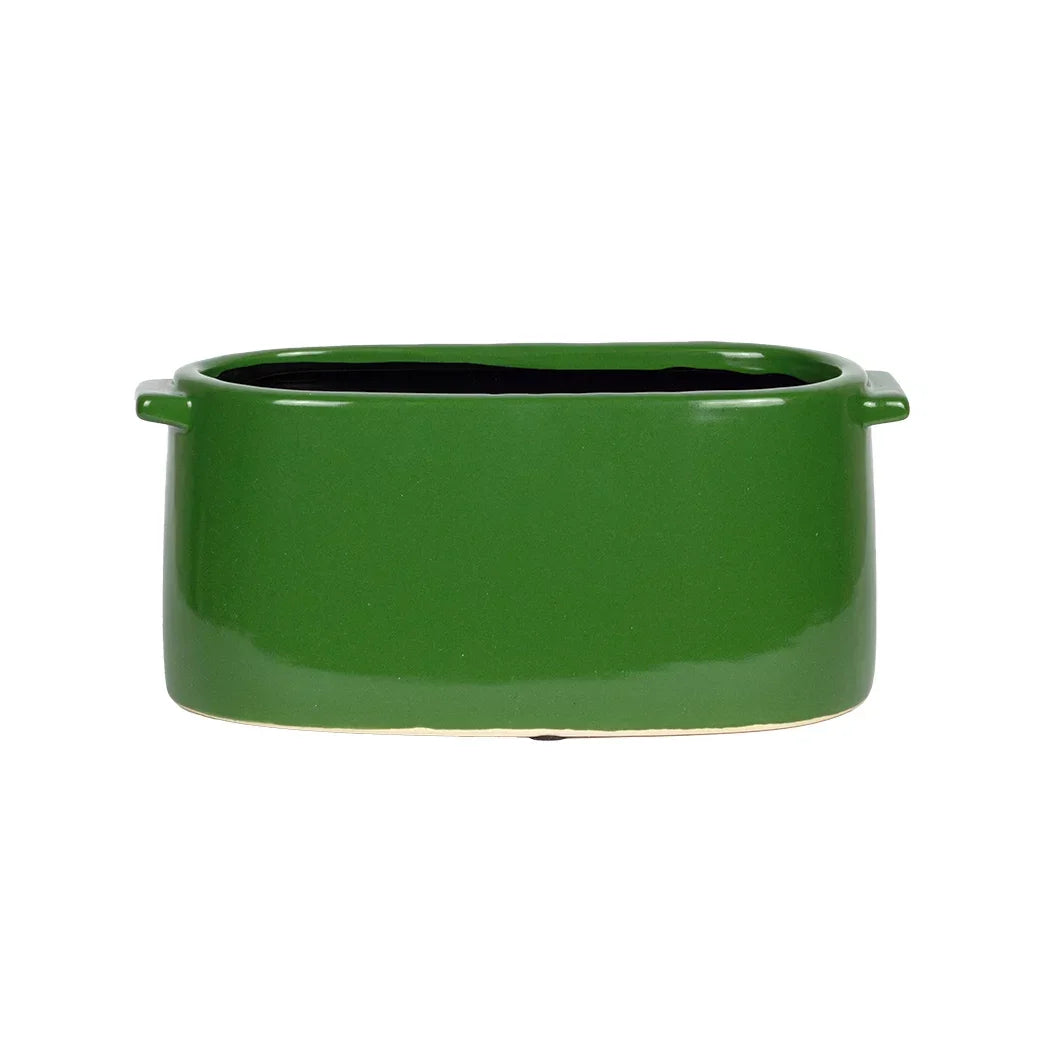 Planter - Ceramic Handled Oval Green Small - Ceramic