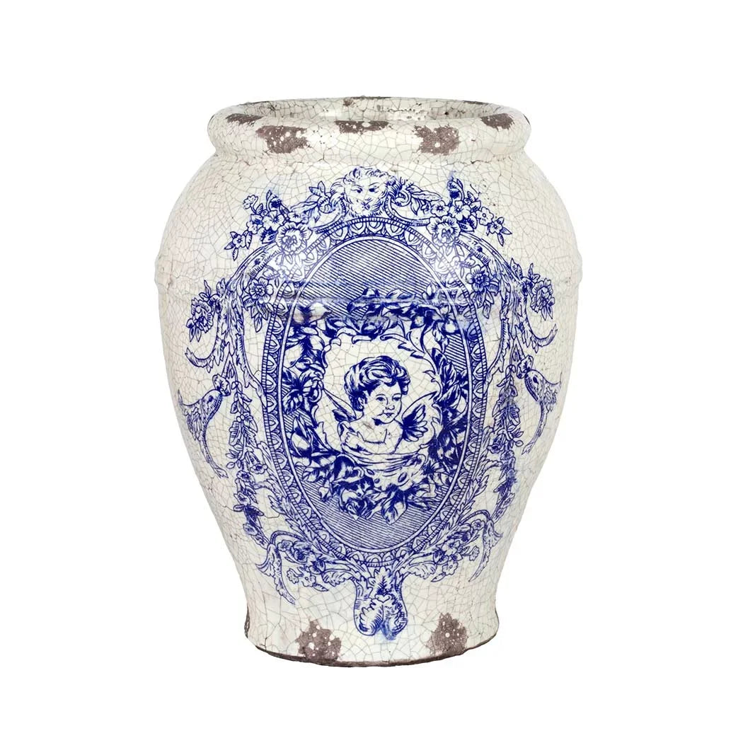 Ceramic Vase - Blue & White Vintaged 30cm - Ceramic