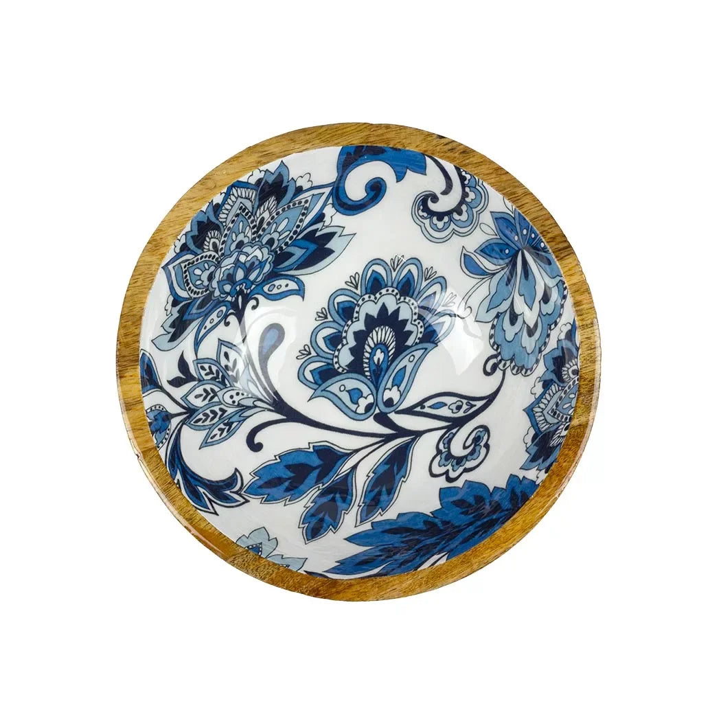 Bowl - Wood Blue Floral Small - Wood