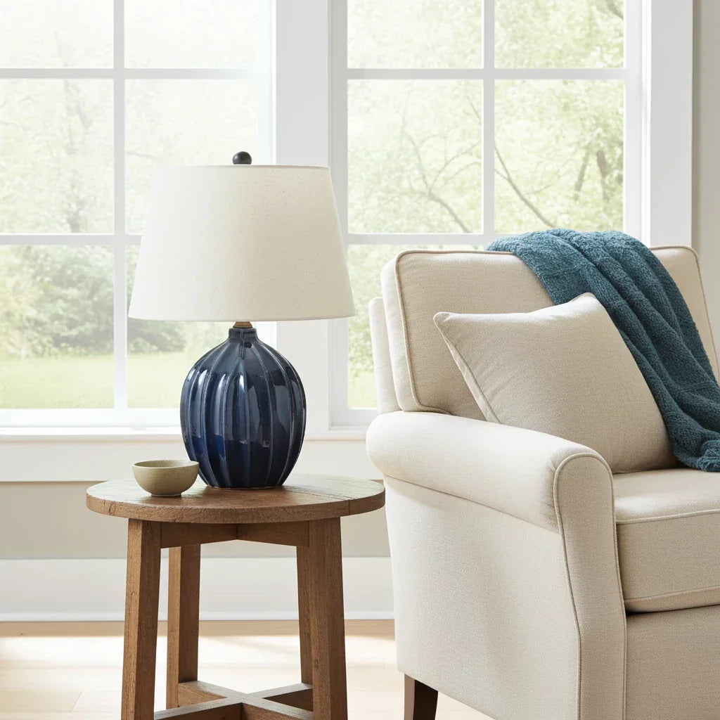 Table Lamp - Embossed Lines Blue