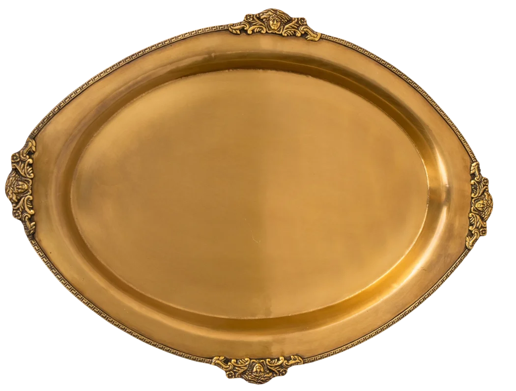 A luxurious, hand crafted, brass tray with a beautifully decorated rim.