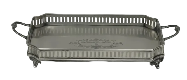 A beautiful, hand crafted, silver pewter plated tray rounded off with 2 decorative handles.