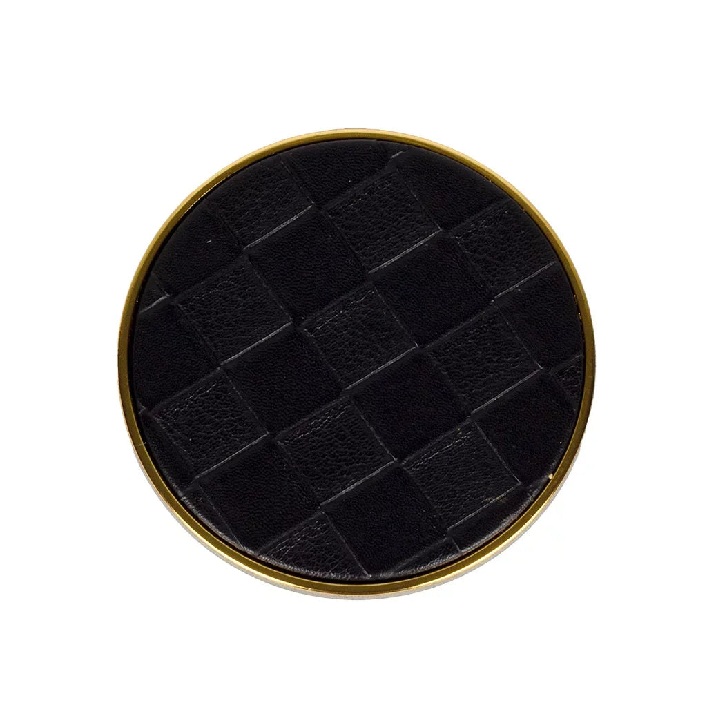 An elegant set of 4 luxurious coasters with a brass coloured rim. Brass coloured coaster holder included.