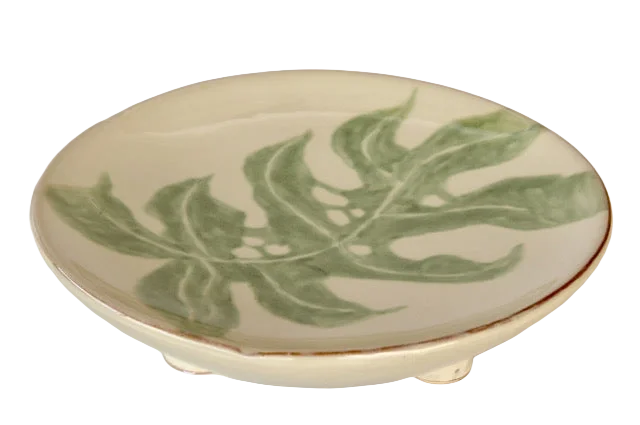 Impress your guests or loved ones with this beautiful ceramic serving platter, elevated on 3 ceramic legs.