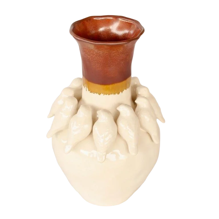 Ceramic Vase - Birds Cream & Brown - Ceramic