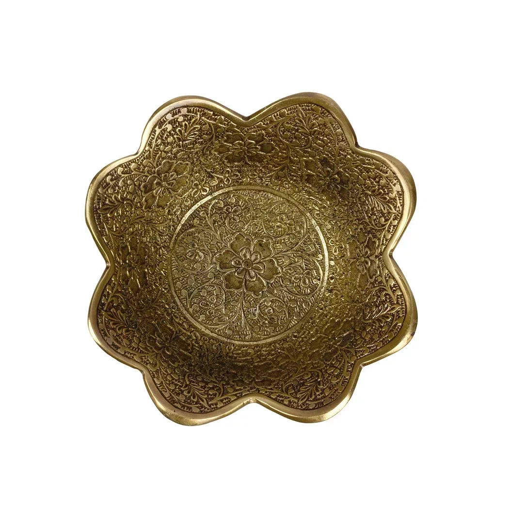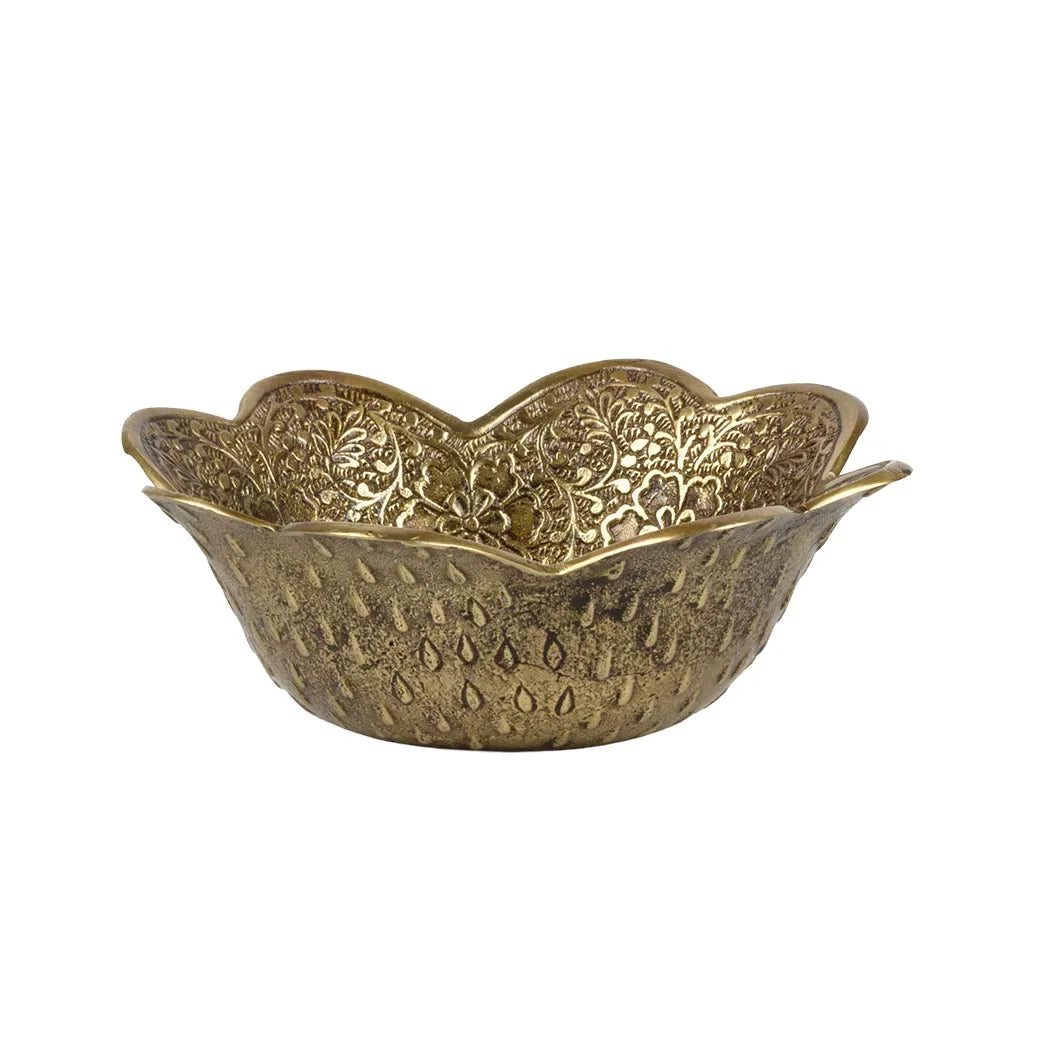 A stunning brass bowl, hand crafted with a stunning floral design.